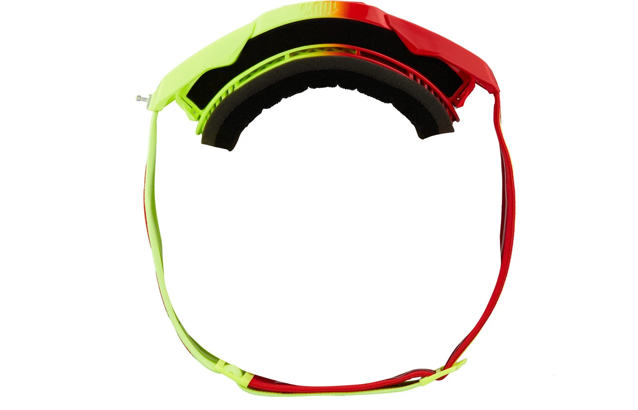Die Armega ist die High-End-Goggle von 100% und kommt als Hiper-Mirror-Lens-Modell mit einem verspiegelten Glas, das Überlappungen zwischen den drei Primärfarben herausfiltert und so Kontrast-, Farb- und Tiefenwahrnehmung verstärkt. Zusätzlich sorgt die Ultra-HD-Technologie für eine unvergleichlich scharfe Sicht, damit Du den Trail noch besser ins Auge fassen kannst. Außerdem verfügt die Goggle über ein 6-Punkt-Befestigungssystem, das einen superschnellen Glaswechsel erlaubt. Ein im Rahmen integrierter Kanal leitet Schweiß aktiv vom Gesicht weg und zusätzliche Belüftungsöffnungen sorgen dafür, dass Du auch beim anstrengendsten Renngeschehen den Durchblick behältst.