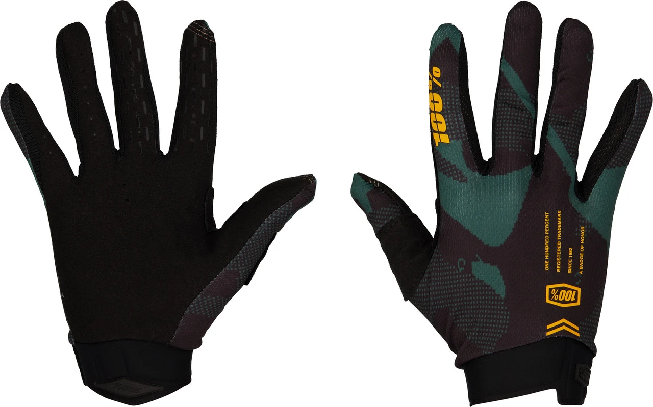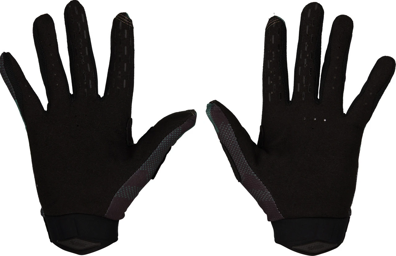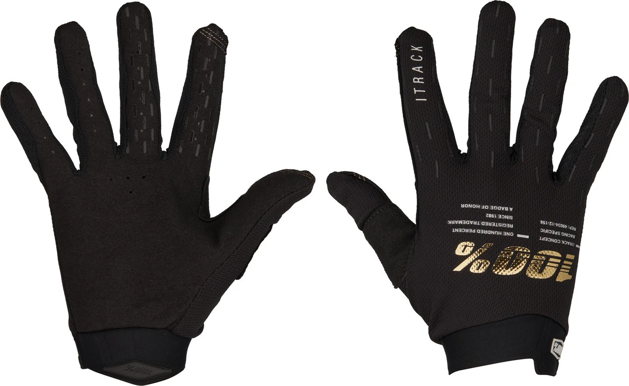 Der iTrack Ganzfinger-MTB-Handschuh von 100% verfügt über eine Netzgewebe-Oberhand und Mesh-Einsätze an den Fingern, was für Top-Belüftung sorgt und Deine Beweglichkeit erhält. Er hat ein Bündchen zum Hineinschlüpfen und eine einlagige Handfläche aus Kunstleder. Die Silikonbeschichtung an Fingern und Handfläche erhöht den Lenkergrip. Eine Verstärkung am Daumen beugt Blasenbildung vor.