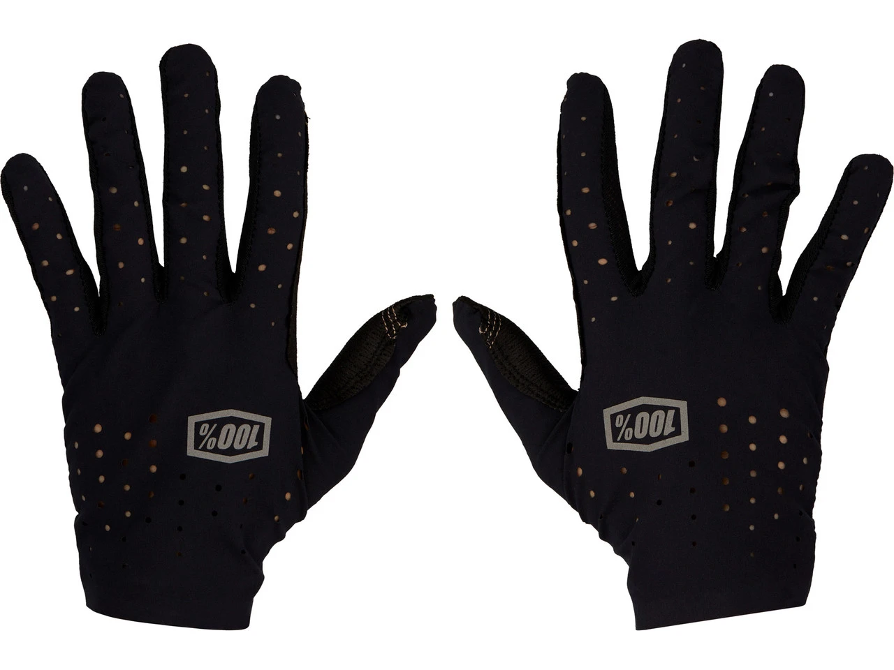 Die 100% Sling Ganzfinger-Handschuhe bieten Dir den Schutz von MTB-Handschuhen kombiniert mit einem unnachahmlich leichten Tragegefühl. Sie bestehen aus ultraleichtem 4-Wege-Stretchmaterial mit perforierten Belüftungsöffnungen. Die perforierte, einlagige Innenseite, Netzeinsätze an den Fingern und die bequemen Schlupfbündchen verstärken den Eindruck, überhaupt keine Handschuhe anzuhaben. Die mit reflektierenden Elementen ausgestattete, komfortable Oberhand sorgt für einen modernen Look und schlichte Eleganz.
