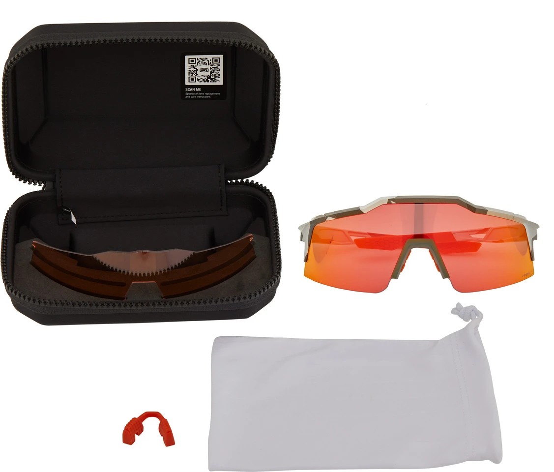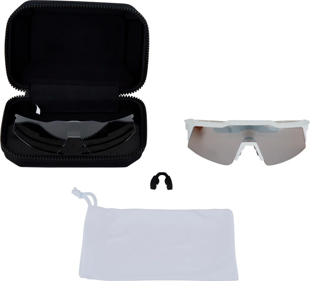 Lieferumfang:1 x Sportbrille 100% Speedcraft SL Hiper1 x Ersatzglas, klar und unverspiegelt (Filterkategorie 0, Lichtdurchlässigkeit: 93 %)1 x Brillen-Case1 x Nasenpad mit alternativer Passform1 x Mikrofaserbeutel