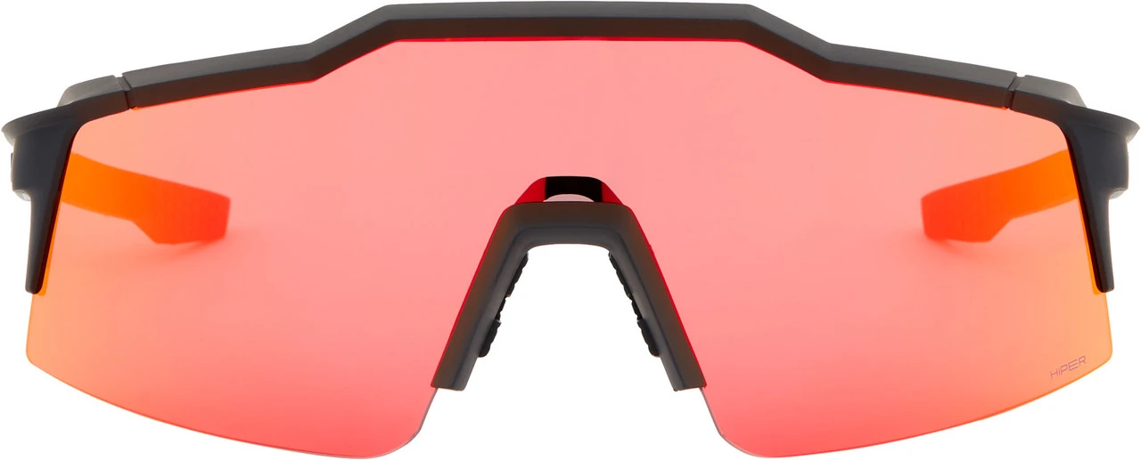 Die Speedcraft SL Hiper Sportbrille von 100% hat eine kompaktere Glasform und einen anderen Nasensteg als die Speedcraft, was sie für Menschen mit kleineren Gesichtern geeignet macht. Das verspiegelte Glas filtert die Überlappung zwischen den drei Primärfarben heraus und verstärkt so die Kontrast-, Farb- und Tiefenwahrnehmung.
