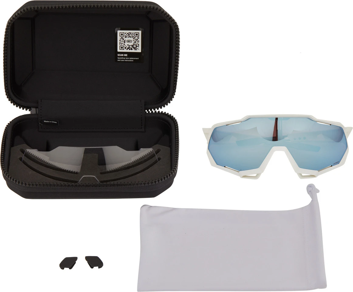 Lieferumfang:1 x Sportbrille 100% Speedtrap Hiper1 x Ersatzglas, klar und unverspiegelt (Filterkategorie 0, Lichtdurchlässigkeit: 93 %)1 x Brillen-Case1 x Nasenpad mit alternativer Passform1 x Mikrofaserbeutel