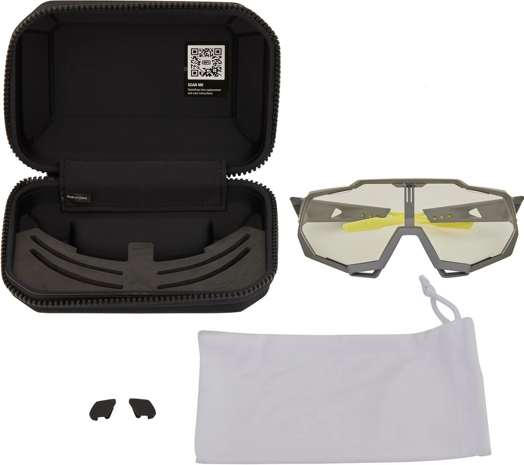 Lieferumfang:1 x Sportbrille 100% Speedtrap Photochromic1 x Brillen-Case1 x Nasenpad mit alternativer Passform1 x Mikrofaserbeutel