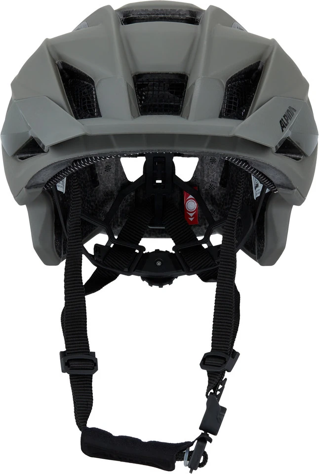 Hunderttausendfach bewährt und bei allen Helmen von Alpina im Einsatz: das Gurtschloss mit dem roten Druckknopf und mehrstufiger Rastautomatik. Ergomatic ist mit einer Hand bedienbar – bergauf kann man den Riemen lockern, bergab straffen – und bei einem Sturz ist es nicht möglich, dass sich der Verschlussmechanismus von selbst öffnet.