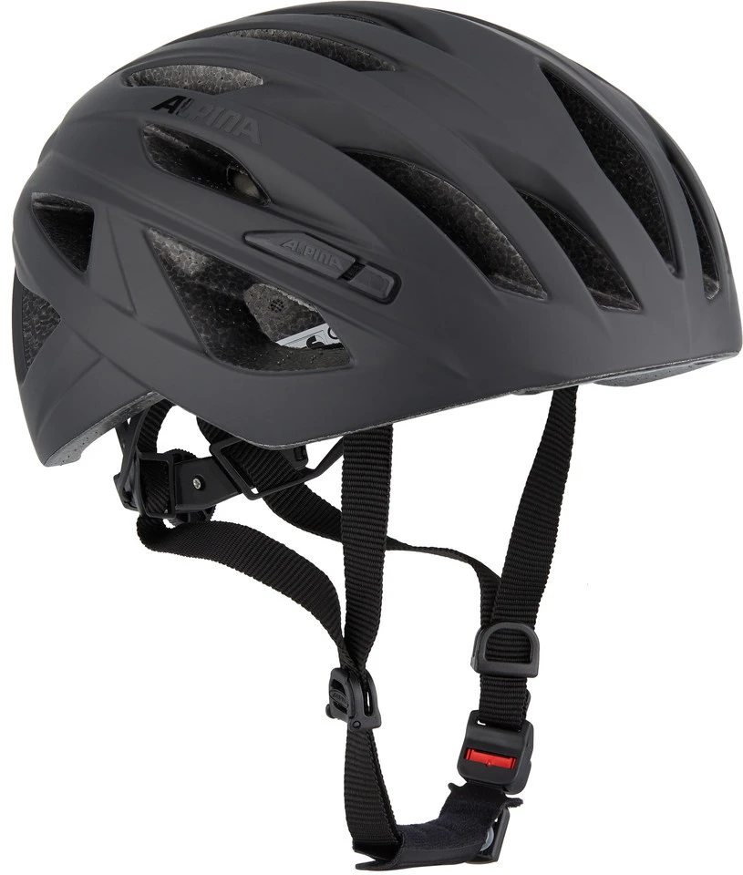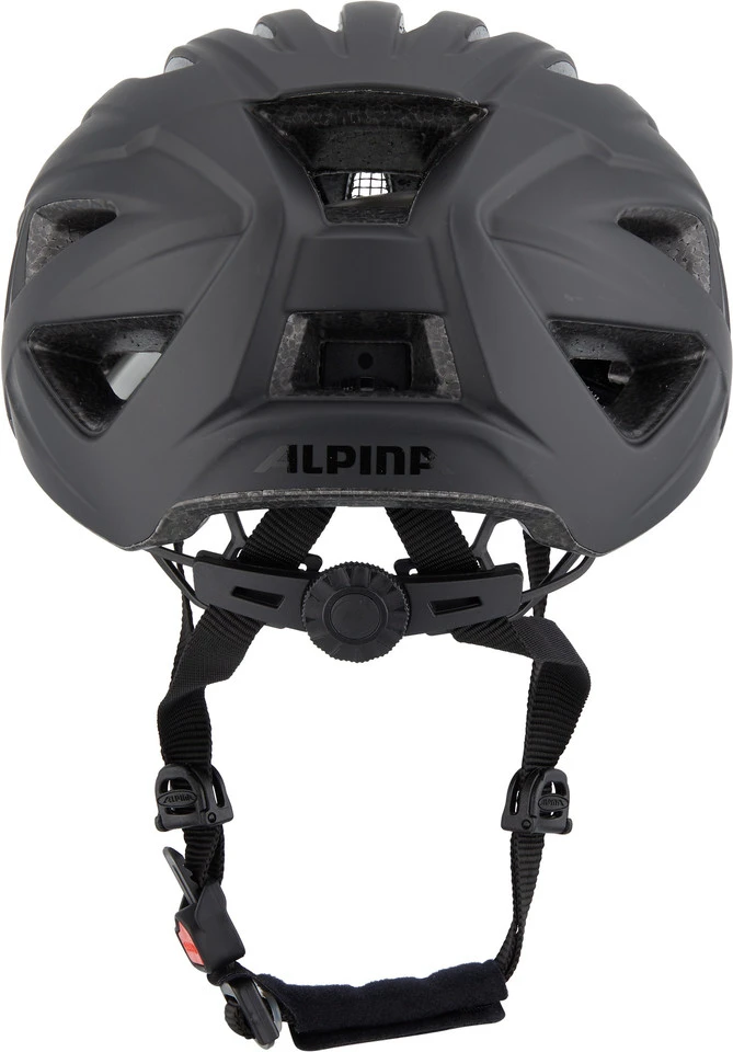 Hunderttausendfach bewährt und bei allen Helmen von Alpina im Einsatz: das Gurtschloss mit dem roten Druckknopf und mehrstufiger Rastautomatik. Ergomatic ist mit einer Hand bedienbar – bergauf kann man den Riemen lockern, bergab straffen – und bei einem Sturz ist es nicht möglich, dass sich der Verschlussmechanismus von selbst öffnet.