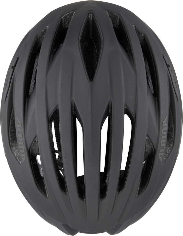 Die Innenschale jedes Alpina-Helms ist aus Hi-EPS („High Expanded Polystyrol“) gefertigt. Es besteht aus mikroskopisch kleinen Luftkammern, welche die bei einem Aufprall einwirkenden Kräfte optimal absorbieren. Hi-EPS sorgt trotz optimaler Schutzwirkung für extradünne Wandstärken und schmale Helmformen.