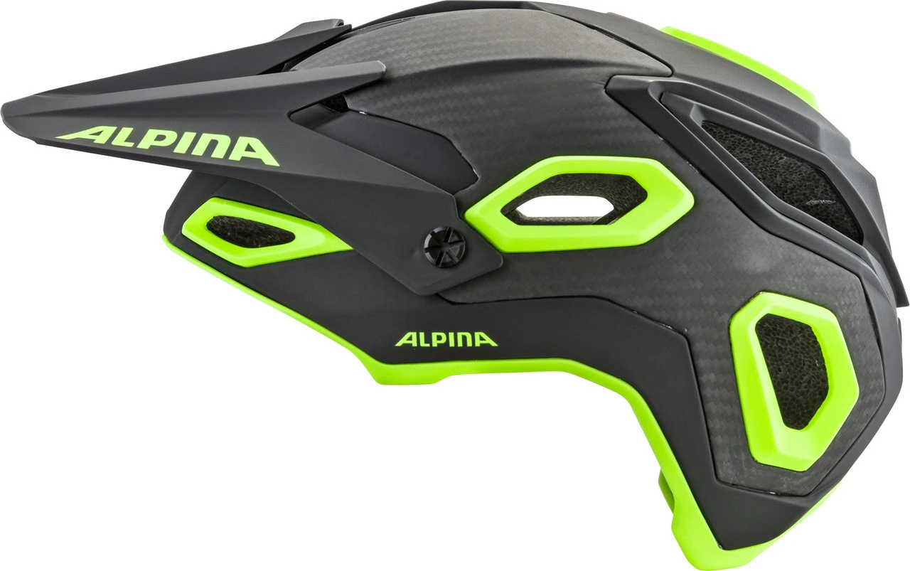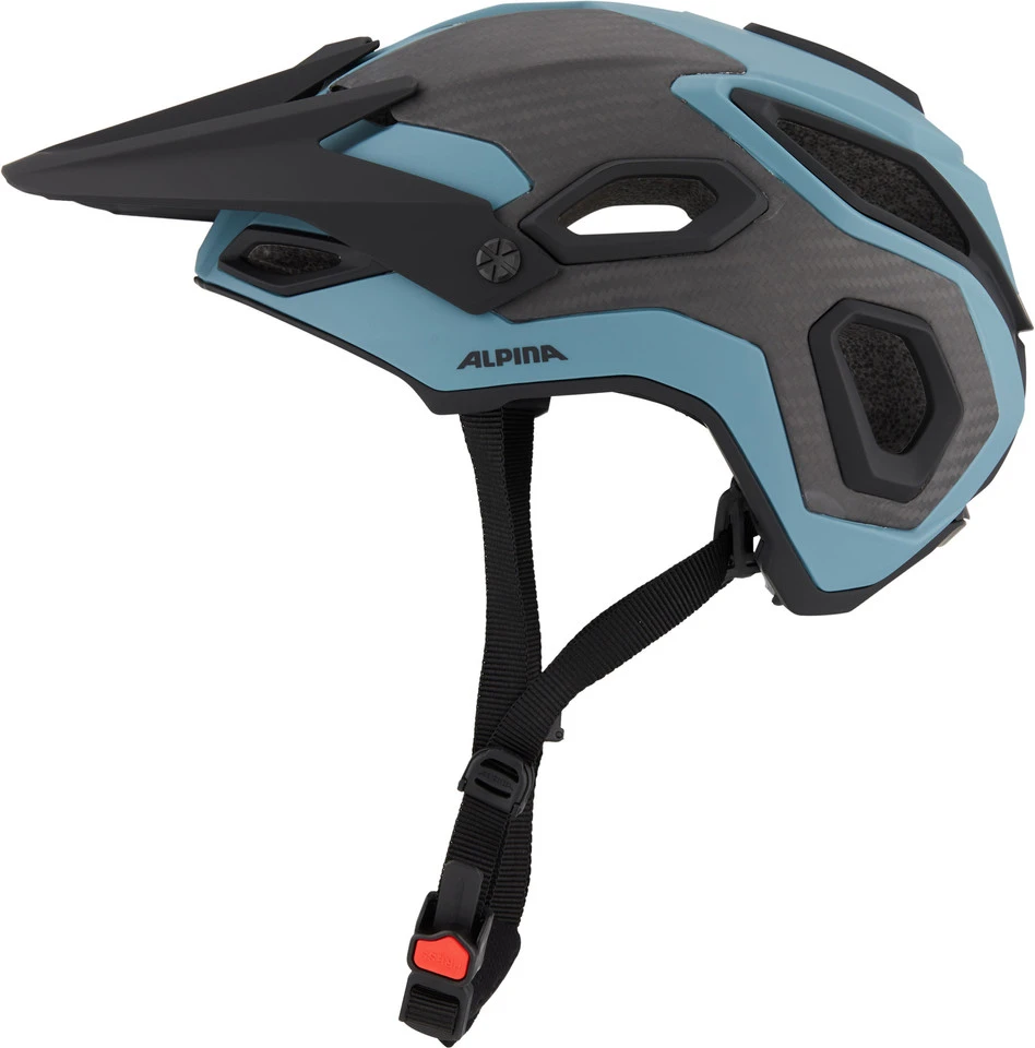 Der Alpina Rootage Helm gehört zu den sichersten Bike-Helmen bei Alpina. In die Außenschale des Helms sind Platten aus Carbon eingearbeitet, die den Alpina Rootage widerstandsfähiger und leichter machen. Gleichzeitig versteifen Einsätze aus Polycarbonat die großen Luftöffnungen, die zusammen mit internen Kanälen eine bestmögliche Klimatisierung des Innenraums garantieren. Er ist mit antibakteriellen Polstern aus CoolMax®-Material für höchsten Komfort ausgestattet. Die Kanten des Helms sind mit Edge Protect veredelt. Ein großes Visier sorgt für mehr Sichtschutz. Zur Ausstattung gehört außerdem das sehr hochwertige und höhenverstellbare Run System Ergo Flex – ein weiteres Plus an Tragekomfort und Sicherheit.