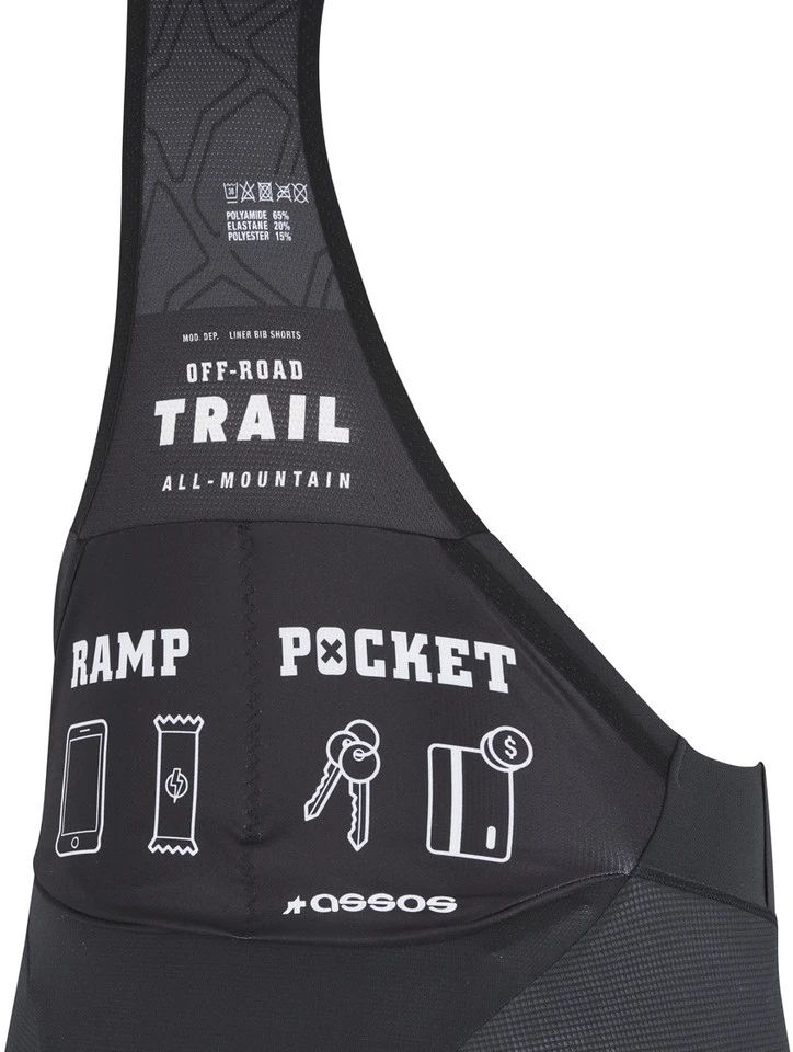 Die ASSOS Trail Liner Bib Shorts Trägerhose ist als Unterhose unter den Trail Cargo Shorts gedacht und überzeugt mit perfekter Passform, stabilem Rückenteil, atmungsaktiver Beinpartie sowie nicht zuletzt mit den eingearbeiteten Taschen. Diese wurden so positioniert, dass sie einfach unter dem Trikot zugänglich sind, jedoch nicht mit dem Bund der darüber getragenen Hose in Berührung kommen. Damit eignet die Trail Liner Bib sich für alle All-Mountain-Abenteurer, die gerne den Rucksack zu Hause lassen, aber auf Trinkflasche, Pumpe oder anderes Zubehör nicht verzichten wollen.