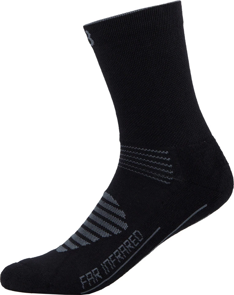 Spezifikationen:Ausführung:Socken mit mittellangem SchaftMaterialausstattung:Far-InfraRedFeatures:Fahrradsocken für den MTB-, Rennrad- und City-Einsatz an kalten TagenFar-InfraRed-Technologie für verbesserten Stoffwechsel und Blutzirkulation des KörpersSohle aus extra warmem Stoff isoliert zusätzlichoffene Struktur an der Oberseite lässt überschüssige Feuchtigkeit leicht verdunstennahtlose Zehenkonstruktion15 cm hoher SchaftMaterialzusammensetzung:41 % Baumwolle, 31 % Polyamid, 25,8 % Polyester, 2 % Elasthan, 0,2 % Keramikpulver
