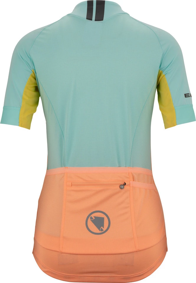 Das kurzärmelige Endura Trikot für Damen aus der rennradorientierten FS260-Pro-Serie mit eng anliegendem Schnitt weist einen durchgehenden Frontreißverschluss auf. Einstecktaschen sowie eine kleine Reißverschlusstasche am Rücken bieten Platz für bspw. Snacks und Windweste.