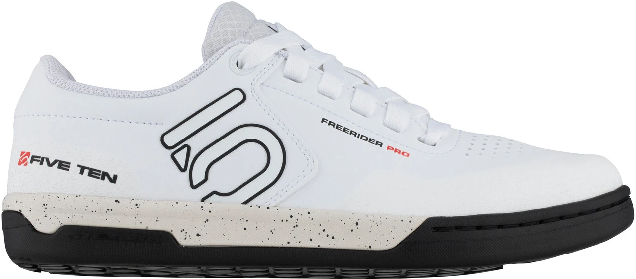 Spezifikationen:Einsatzbereich:All Mountain, Enduro, Dirtjump & SlopestylePedalsystem:PlattformVerschluss:SchnürungFeatures:Mountainbike-Schuhe mit griffiger Sohle für Flatpedalshoher Schutz und schnelle Trocknungwasserabweisend, atmungsaktivOrtholite® Einlegesohledämpfende, vorgeformte EVA-Zwischensohlespezielle Dotty Stealth S1-Sohle für perfekten Grip auf und neben dem Pedalmit Urethan-ZehenschutzVerwendung von recycelten MaterialienMaterialzusammensetzung:Obermaterial:SonstigesFutter und Decksohle:TextilLaufsohle:SonstigesGrößenberatung:38 2/3:EU 38 2/3 / UK 5,5 / US 639 1/3:EU 39 1/3 / UK 6 / US 6,540:EU 40 / UK 6,5 / US 740 2/3:EU 40 2/3 / UK 7 / US 7,541 1/3:EU 41 1/3 / UK 7,5 / US 842:EU 42 / UK 8 / US 8,542 2/3:EU 42 2/3 / UK 8,5 / US 943 1/3:EU 43 1/3 / UK 9 / US 9,544:EU 44 / UK 9,5 / US 1044 2/3:EU 44 2/3 / UK 10 / US 10,545 1/3:EU 45 1/3 / UK 10,5 / US 1146:EU 46 / UK 11 / US 11,546 2/3:EU 46 2/3 / UK 11,5 / US 1247 1/3:EU 47 1/3 / UK 12 / US 12,548:EU 48 / UK 12,5 / US 13Herstellernummern:core black-carbon-wonder white:GW54420core black-core black-ftwr white:FW28230core black-ftwr white-ftwr white:FW28220grey five-ftwr white-halo blue:FW28241red-ftwr white-core black:FW28250Lieferumfang:1 Paar MTB Schuhe Five Ten Freerider Pro