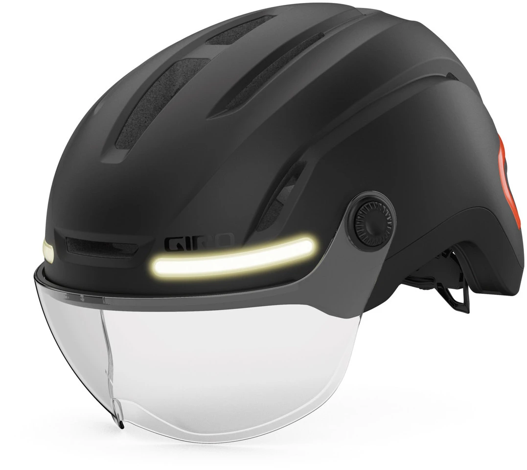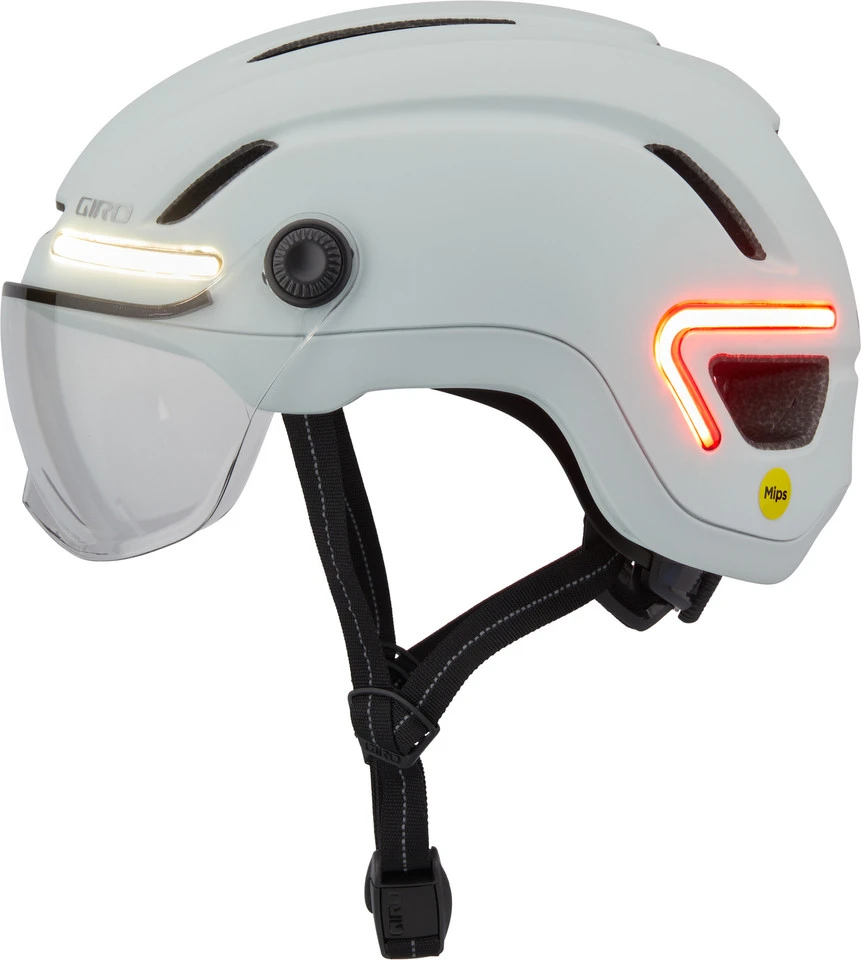 Spezifikationen Lampe:Ausführung:Helmlampe (weiß, rot)Leuchtmittel:LEDLeuchtkraft:45 (weiß), 25 (rot)Leuchtdauer (max.):11 StundenTechnische Daten Lampe:Leuchtmodi:Dauerlicht (Stufe 1), Dauerlicht (Stufe 2), Blinklicht (Stufe 1), Blinklicht (Stufe 2)Technische Daten Akku:Kapazität:Lithium-PolymerFeatures:City-Helm mit MIPS und LED-Leuchten vorne und hinten sowie klarem Visierverstellbares Visier schützt vor Fahrtwind und Regen4 Leuchtfunktionen (2 x Dauerlicht, 2 x Blinklicht) und RichtungsanzeigeLicht steuerbar über Lenkerfernbedienungaufladbar über USB-CStufe 1 Blinklicht: Leuchtdauer bis zu 11 Std., LED-Leuchtleistung vorne 25 Lumen, hinten 15 LumenStufe 2 Blinklicht: Leuchtdauer bis zu 7,5 Std., LED-Leuchtleistung vorne 45 Lumen, hinten 30 LumenStufe 1 Dauerlicht: Leuchtdauer bis zu 5,5 Std., LED-Leuchtleistung vorne 25 Lumen, hinten 10 LumenStufe 2 Dauerlicht: Leuchtdauer bis zu 2,5 Std., LED-Leuchtleistung vorne 40 Lumen, hinten 25 LumenLED mit FL-1- und IP-65-Standardkomfortable Slimline-Gurte mit schmaler Steckschnallereflektierende BereicheTechnologien:In-Mold Construction