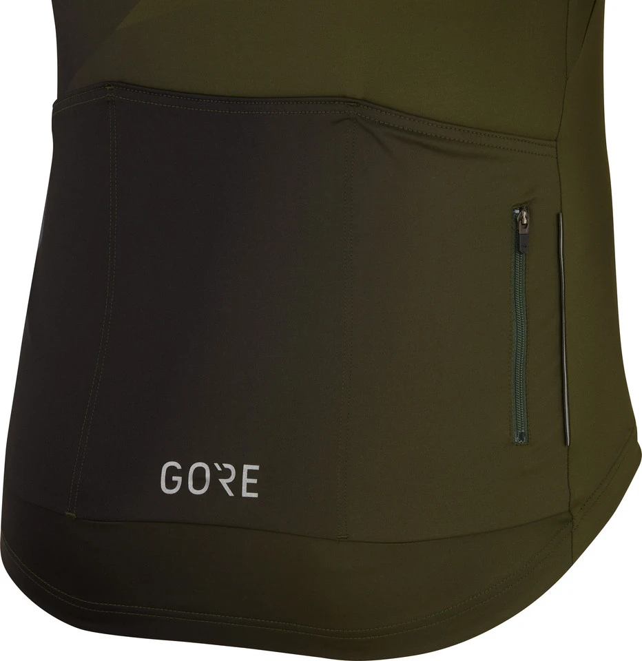 Das Fade Trikot von GORE Wear ist ein leichtgewichtiges Kleidungsstück für Rennradfahrer. Die längeren Ärmel sowie die verlängerte Rückseite zielen auf eine sportliche Fahrposition ab. Die Innenseite des Saums ist mit einem Silikonstreifen versehen und hält die Rückseite des Trikots an Ort und Stelle. Drei Rückentaschen bieten Platz für notwendige Utensilien. In der kleinen Reißverschlusstasche bringst Du Wertsachen unter. Ein durchgehender Frontreißverschluss und reflektierende Details runden das Trikot ab.