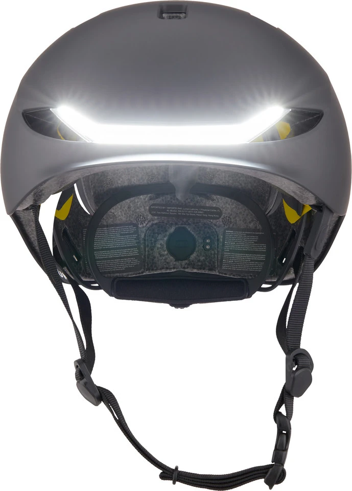 Spezifikationen Helm:Einsatzbereich:City, Touring & TrekkingBelüftungsöffnungen:8Konstruktion:ABS-Hartschale + MIPSVerschluss:SteckschnalleSpezifikationen Lampe:Ausführung:Helmlampe (weiß, RGB)Leuchtmittel:LED (99)Leuchtkraft:1000 LumenLeuchtdauer (max.):18 Std.Betriebsmittel:Akku (Li-Po), integriertLadestandsanzeige:ja, in Smartphone AppTechnische Daten Lampe:Material:KunststoffLeuchtmodi:Dauerbetrieb, Blinkmodus, erweiterter BlinkmodusBatterieart:Lithium-Polymer Akku (3,7 V, 1800 mAh)Technische Daten Akku:Kapazität:1800 mAhLadezeit:5 StundenFeatures:intelligenter Fahrradhelm mit Vorder- und Rücklicht, Blinker und automatischem Bremslichtvorne 22 weiße LEDs, hinten 77 individuell programmierbare LEDs (RGB)Hairport System bietet komfortablen Sitz für Fahrer mit langen HaarenHelmbeleuchtung sorgt für rundherum 360° SichtbarkeitFernbedienung am Lenker für den Blinkerpassende Smartphone App LUMOS Companion zeigt Akkustand und ermöglicht Einstellungenkompatibel mit Apple Health und StravaApple Watch als Fernbedienung nutzbarwetterfest dank vollständig versiegelter ElektronikInnenpolsterung aus schweißableitendem MaterialBluetooth 4.0 kompatibelTechnologien:MIPS®:MIPS (Multi-Directional Impact Protection System) ist eine einzigartige Technologie, die das Gehirn bei einem schrägen Aufprall schützt.Dabei wird das Prinzip der natürlichen reibungsarmen Schicht des Hirns adaptiert, um die auftretenden Kräfte zu minimieren.