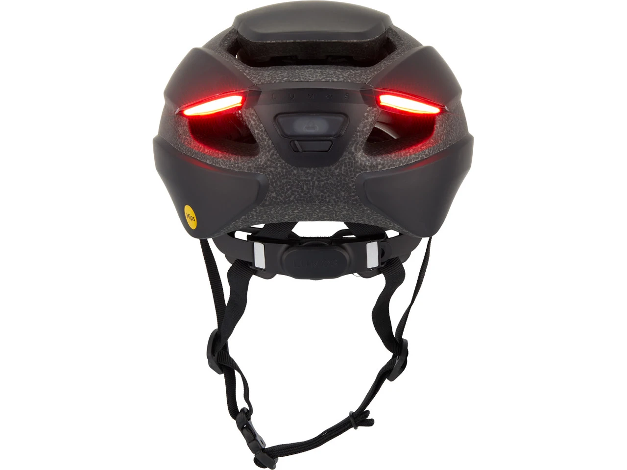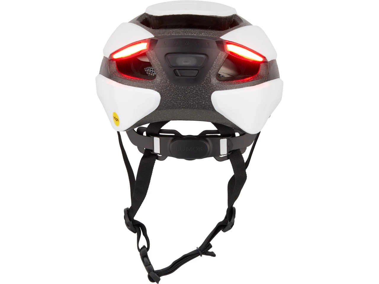 Spezifikationen Lampe:Ausführung:Helmlampe (weiß, rot)Leuchtmittel:LED (94)Leuchtkraft:500 LumenLeuchtdauer (max.):10 StundenBetriebsmittel:Akku (Li-Po), integriertLadestandsanzeige:ja, in Smartphone AppTechnische Daten Lampe:Material:KunststoffLeuchtmodi:Dauerbetrieb, BlinkmodusBatterieart:Lithium-Polymer Akku (3,7 V, 1100 mAh)Technische Daten Akku:Kapazität:1100 mAhLadezeit:3 StundenFeatures:smarter Fahrradhelm mit Vorder- und Rücklicht, Blinker und Bremslicht hintenvorne 30 weiße LEDs, hinten 64 rote LEDsHelmbeleuchtung für rundum gute SichtbarkeitFernbedienung am Lenker für den BlinkerLUMOS Companion Smartphone-App für Akkustandabfrage und Einstellungkompatibel mit Apple Health und StravaApple Watch als Fernbedienung nutzbarwetterfest dank vollständig versiegelter ElektronikInnenpolsterung aus schweißableitendem Materialdrahtlose Verbindung über Bluetooth 4.0Herstellernummern:black:LHEUT5-M0-BK-UPdeep blue:LHEUT5-M0-DB-UPwhite:LHEUT5-M0-WH-UPTechnologien:MIPS®
