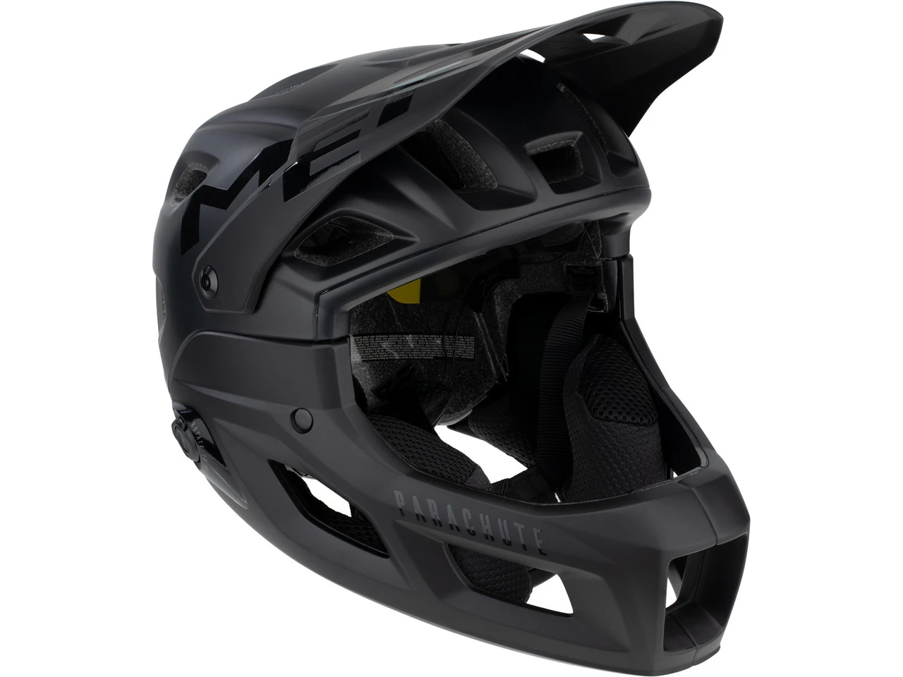 Durch das in Kooperation mit FIDLOCK entstandene MCR (Magnetic Chinbar Release) Verschlusssystem lässt sich der Fullface-Helm im Handumdrehen in eine Halbschale verwandeln und umgekehrt. Der Parachute MCR bietet maximalen Schutz vor linearen Einschlägen und, durch das MIPS®-Gehirnschutzsystem, vor Rotationskräften. Zusätzlich wurde der Helm mit einem flexiblen Visier ausgestattet, welches im Falle eines Sturzes effektiv dabei hilft, Rotationskräfte auf den Nacken zu minimieren.