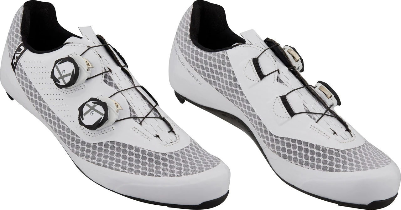 Die Northwave Mistral Plus Schuhe für Road-Pedale haben eine steife Sohle mit Carbon, sind leicht und überzeugen mit sehr hoher Atmungsaktivität und dem doppelten SLW3-System.