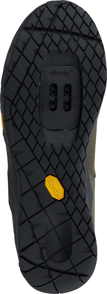 Die Fort-Augustus-Vibram-Sohle mit einem Steifigkeitsindex von 5 zeichnet sich durch ihr leistungsstarkes Stollendesign aus. Unterhalb der Cleats profitierst Du von gutem Grip auf dem Rad oder zu Fuß, auf nassem wie trockenem Boden. Der anschließende Bereich Richtung Ferse bietet gute Traktion. Eine leichte EVA-Zwischensohle dämpft Vibrationen und erhöht so Deinen Komfort beim Fahren.