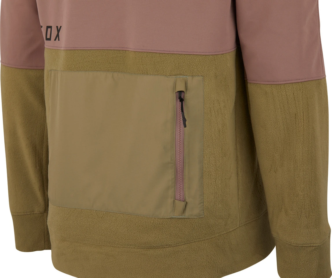 Der Ranger Windbloc Hoodie von Fox Head schützt Dich beim Mountainbiken vor kaltem Fahrtwind. Die schlanke Passform verhindert dabei zu großen Windwiderstand. Neben dem windabweisenden Polartec®-Windbloc®-Material an Brust, Oberarmen und Kragen besteht der Hoodie auch aus wärmendem Polartec®-Fleece. Dieses erhöht den Tragekomfort. In der Reißverschlusstasche am Rücken verstaust Du wichtige Kleinigkeiten. Die angeschnittene Kapuze lässt sich über einen Kordelzug in der Weite regulieren.