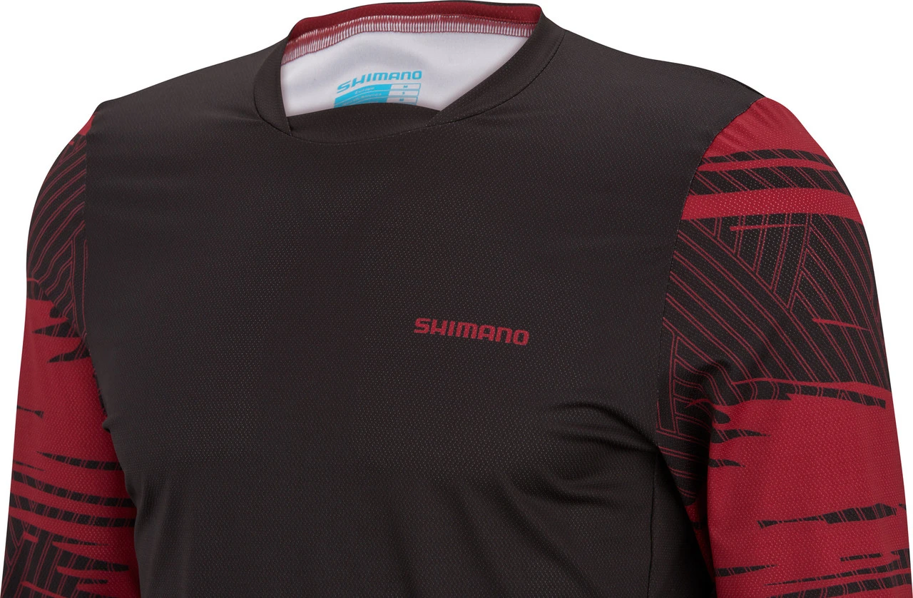 Das langärmelige Myoko MTB-Trikot von Shimano besteht aus leichten Materialien, die sich durch Elastizität und Atmungsaktivität auszeichnen. So bleibst auf Du beim schweißtreibenden Trailriding angenehm kühl und trocken. Das Jersey ist zwar körpernah und flatterfrei, jedoch bequem geschnitten – für volle Bewegungsfreiheit. Auch der angedeutete V-Ausschnitt, die glatten Nähte an den Ärmelabschlüssen sowie der Verzicht auf einen Reißverschluss tragen zum Komfort und Style bei. Die extravagante Musterung tut ihr Übriges, um dieses Trikot zur Geltung zu bringen. An der Vorderseite eingenäht findest Du ein praktisches Brillenputztuch.