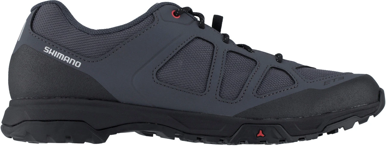 Spezifikationen:Einsatzbereich:All Mountain, Touring & TrekkingPedalsystem:PlattformVerschluss:SchnürungFeatures:Power Blade: halbsteife Zwischensohlenplatte für effiziente Kraftübertragung aufs Pedal360° Traction: spezielles Blockprofil der Sohle für Griffigkeit auf unterschiedlichen Pedalen und Untergründen, bergauf und bergabadaptive Querrillen in der Sohle bieten Halt für unterschiedliche Pedalkäfige und Pinsgeschützte Zehenboxreflektierende Detailsals für E-Bike geeignet eingestuftideal in Kombination mit Pedalen PD-T8000, PD-M324, PD-EH500, PD-EF102Materialkennzeichnung:Obermaterial:Sonstiges (Kunstleder), Textil (Mesh)Futter und Decksohle:Textil (Mesh)Laufsohle:Sonstiges (Gummi)Größenberatung:Diese Shimano Schuhe fallen kleiner aus, als man der Größe nach erwarten könnte. Am besten eine Nummer größer als gewohnt bestellen.