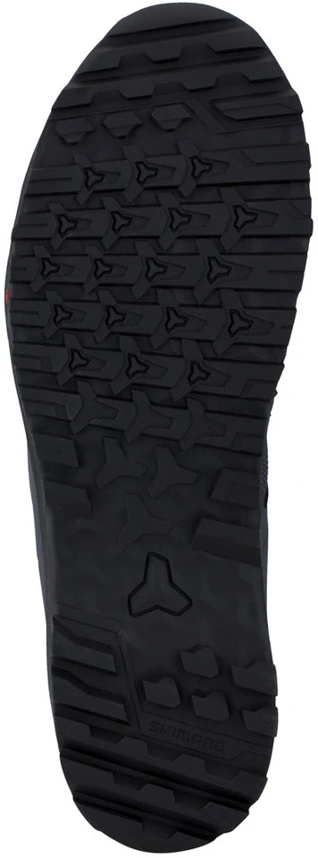 Die Shimano SH-ET3 E-Bike Schuhe (SH-ET300) sind für den Elektrobike-Einsatz optimierte Flat-Pedal-Schuhe mit klassischer Schnürung, die sich durch extreme Griffigkeit und effiziente Kraftübertragung auszeichnen. Für besten Halt auf Pedal und Untergrund sorgt nicht nur das Blockprofil der Sohle, sondern auch das Querrillenmuster. Damit nichts von Deiner und der Power des Motors verloren geht, wurde eine halbsteife Power Blade Zwischensohle eingezogen. Eine Zehenbox für zusätzlichen Schutz und Reflexelemente runden den SH-ET3 Schuh ab.