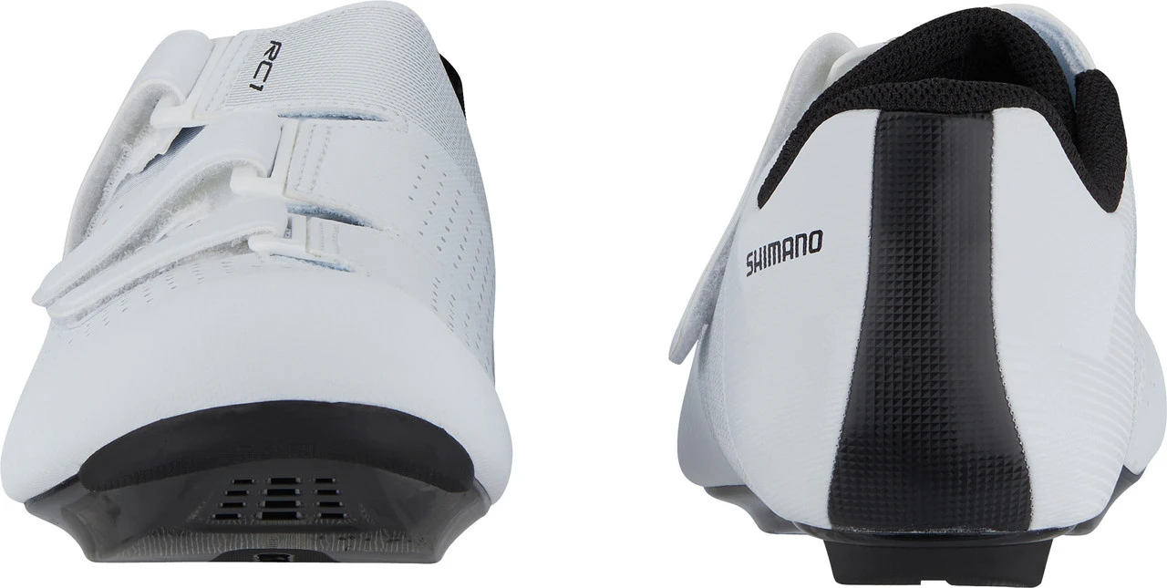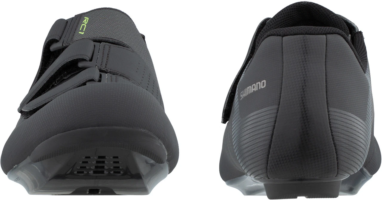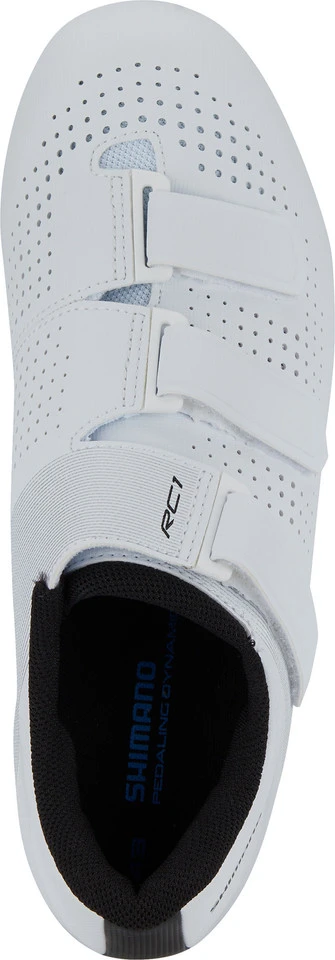 Die Schuhe SH-RC100 von Shimano, kurz RC1 genannt, richten sich an Rennrad-Einsteiger und zeichnen sich durch einen dreiteiligen Klettverschluss sowie eine mittelsteife Außensohle aus glasfaserverstärktem Nylon aus. Die Riemen wurden so angeordnet, dass sich der Druck auf den Fußrücken angenehm verteilt. Zum passgenauen, komfortablen Sitz trägt auch der wenig überlappende Oberschuh aus Kunstleder bei, welcher zugleich für eine sportliche Optik sorgt. Die Shimano Dynalast-Technologie der Schuhleisten fördert die Pedaliereffizienz und wirkt einer vorzeitigen Ermüdung entgegen.