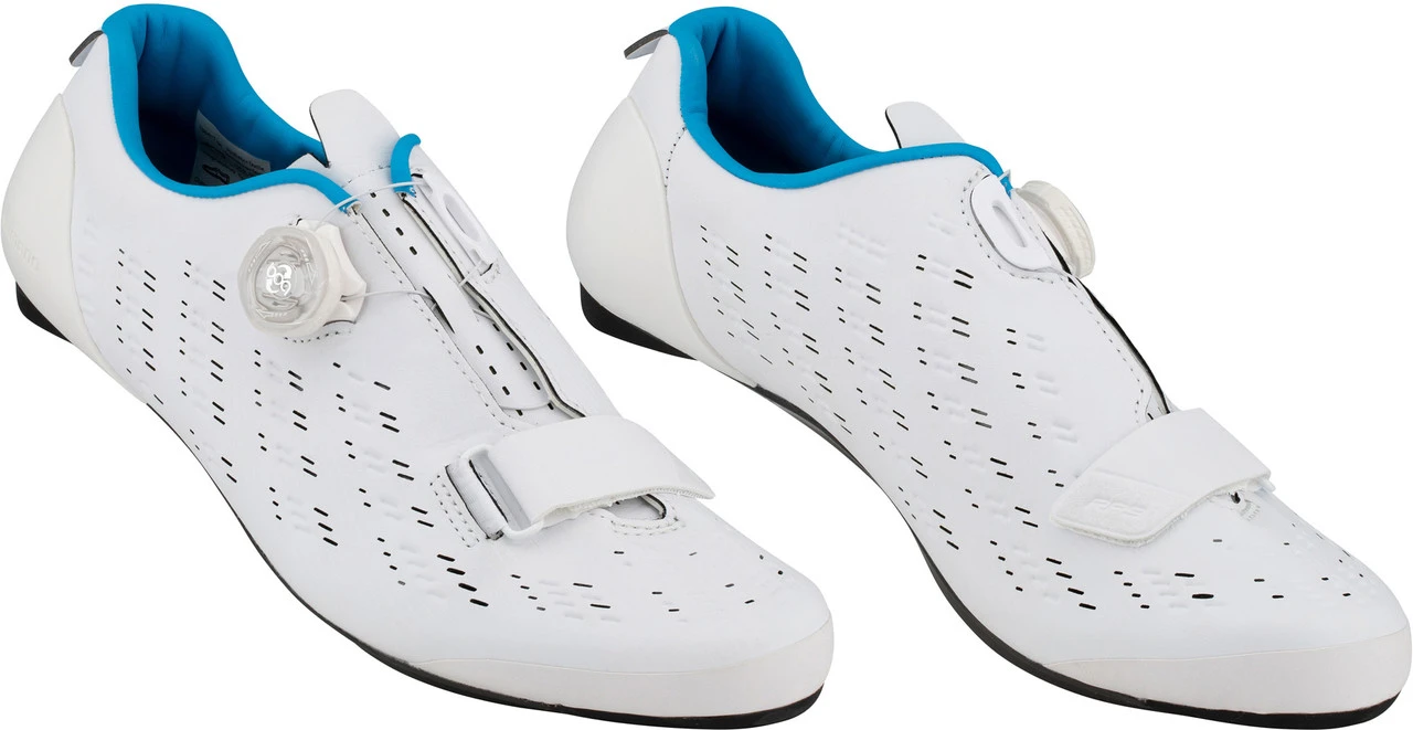 Die Shimano SH-RP9 (SH-RP901) Road Performance Schuhe bieten einzigartigen Komfort und maximale Leistungsstärke auch auf langen Fahrten. Sie bestehen aus weichem, atmungsaktivem Kunstleder und haben eine leichte, hochsteife Carbon-Außensohle. Der BOA Drehverschluss lässt sich sehr präzise einstellen und sorgt gerade auch in Kombination mit der externen Fersenkappe für perfekten Halt. Dank Shimano Dynalast Technologie, einer speziellen Sohlenkonstruktion, werden die Füße entlastet, was zu mehr Tritteffizienz beiträgt.