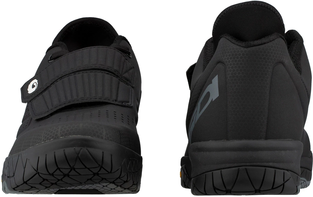 Die speziell für den Dimaro entwickelte Vibram-Sohle bietet alles, was einen MTB-Schuh von der Masse abhebt: hervorragende Performance, ein Profil, das sich regelrecht in die Pedale krallt, und die Möglichkeit, SPD-Cleats zu montieren.