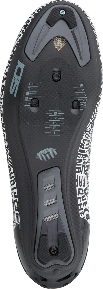 Features:nachhaltig hergestellt aus recycelter Mikrofaser, beschichtet mit biobasierten Getreide-HarzenEinlegesohle aus Baumwolle und recyceltem Polyurethanextravagantes Design mit Zitaten des Sidi-Gründershochwertige Carbonsohle mit Sole Replacement System (SRS) und Boost-Passform im Mittelbereich für direkte Kraftübertragungovale Löcher erweitern den Verstellbereich der Cleats um +/- 5 mmDoppel-Drehverschluss mit Push-Knopf zum Anhebenindividuelle Einstellbarkeit des Fersenbereichs über zwei SchraubenFersenkappe für mehr Stabilitätaustauschbarer Fersenabsatz für mehr Griffigkeitkompatibel mit den gängigen Rennrad-PedalsystemenMaterialkennzeichnung:Obermaterial:SonstigesFutter und Decksohle:TextilLaufsohle:SonstigesTechnologien:BIO-VEG-Mikrofaser