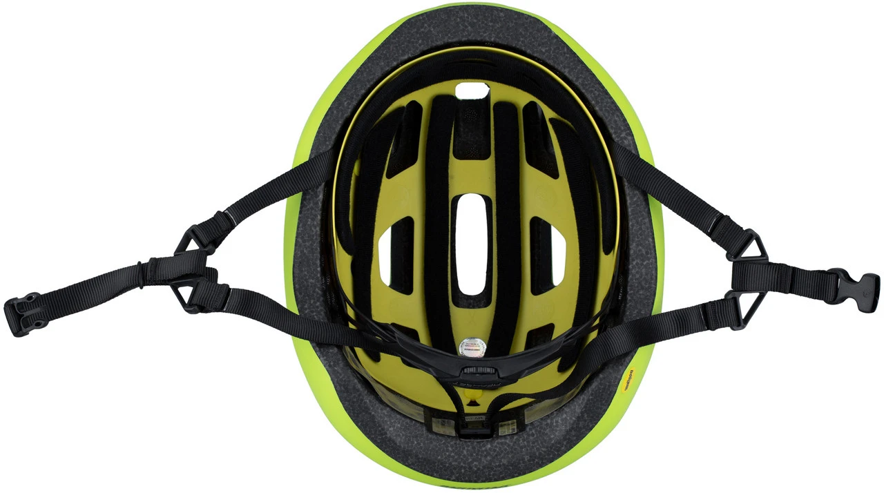 MIPS steht für „Multi Directional Impact Protection System“ und bezeichnet eine bewegliche Schutzschicht, die in den meisten Helmen von Specialized verbaut ist. Dieses Inlay ist über ein Elastomer mit dem Helm verbunden und kann um ca. 10 bis 15 mm in alle Richtungen gleiten. Dadurch werden die bei einem Sturz auf den Kopf einwirkenden Rotationskräfte aufgenommen und reduziert. In der Ausführung als MIPS SL bei den S-Works Road-Helmen und dem Ambush Helm achtet Specialized zusätzlich darauf, dass sich aus der MIPS-Schicht keine Nachteile in Sachen Belüftung und Gewicht ergeben.