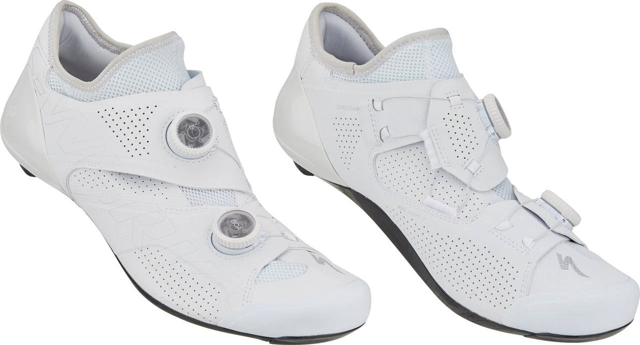Features:ergonomisch designte, wissenschaftlich getestete Body-Geometry-Features (Fußgewölbestütze, Varuskeil, Einlegesohle) für saubere vertikale Tretbewegung, mehr Leistung und Wohlbefinden, Vorbeugung von Verletzungenspezielles Design sichert den Fuß für extreme Belastungen auch im Wiegetritt, verhindert Bewegung des MittelfußesDyneema-Fasern eingebettet in Synthetik- und TPU-Schichten für Zonen ohne Stretch, besonderer Halt und Komfortsteifste und leichteste FACT Powerline Carbonsohle von Specialized maximiert Power-Transferzweiteiliges BOA Li2 Verschlusssystem für schnelle MikroanpassungenPadLock™-Fersenkonstruktion umhüllt die Ferse für bessere Beschleunigungrutschhemmendes, austauschbares Fersenprofil mit versenkten Befestigungsschrauben für mehr SicherheitForm-Fit-Leisten mit geräumiger Zehenbox erhöht den KomfortSchuhplatten-Einsätze aus Titan und Aluminium können gewendet werden, um die Platten 5 mm weiter hinten zu montierendrei Gewindeeinsätze, passend für alle gängigen Rennrad-PedalsystemeMaterialkennzeichnung:Obermaterial:Sonstiges, TextilFutter und Decksohle:TextilLaufsohle:SonstigesTechnologien:FACT™
