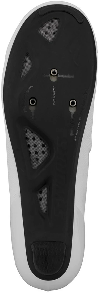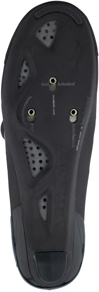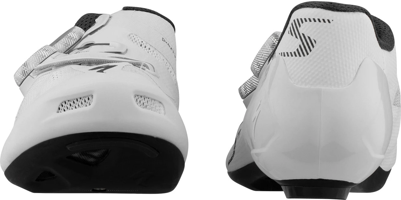Die S-Works Vent Rennradschuhe von Specialized begeistern mit hervorragender Belüftung, welche Dir auch an den heißesten Tagen zu einem komfortablen Tragegefühl verhilft. Das liegt einerseits an dem luftdurchlässigen Zehenraum, andererseits an der neuartigen Mesh-Oberschuhkonstruktion, die kühlt und Schweiß verdunsten lässt. Außerdem tragen Aussparungen in der Carbonsohle – die zugleich Gewicht einsparen – zum Luftaustausch bei. Natürlich wissen die S-Works Vent dank eingearbeiteter hochfester Dyneema®-Fasern sowie der speziellen Fersenkonstruktion auch mit ihrer Kraftübertragung zu überzeugen. Hinzu kommen zwei BOA-Verschlüsse für schnelle, präzise Einstellung. Last but not least verfügen diese Schuhe über eine Body-Geometry-Außensohle und ein Fußbett, die die vertikale Tretbewegung fördern, den Fuß stützen und Taubheitsgefühle reduzieren. Gesteigerte Leistungsfähigkeit, Wohlbefinden und gelenkschonendes Pedalieren sind die Folge.