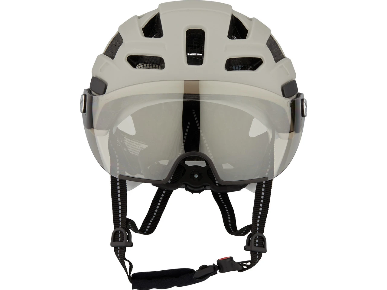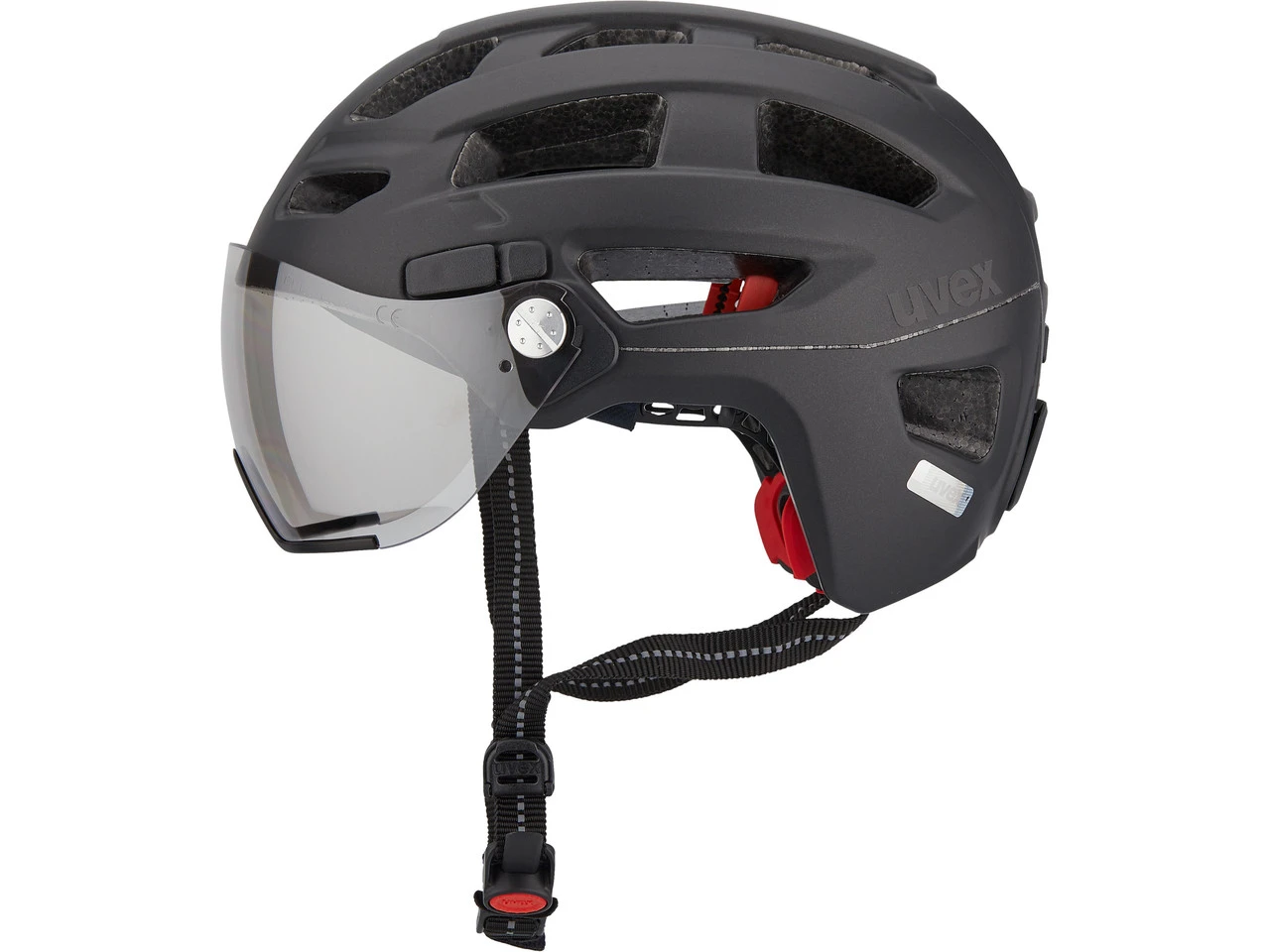 Mit dem uvex finale visor sind Radfahrer in der Stadt für alle Bedingungen gewappnet, da der In-Mold-Helm mit integriertem Visier daherkommt und somit Helm und Brille vereint.