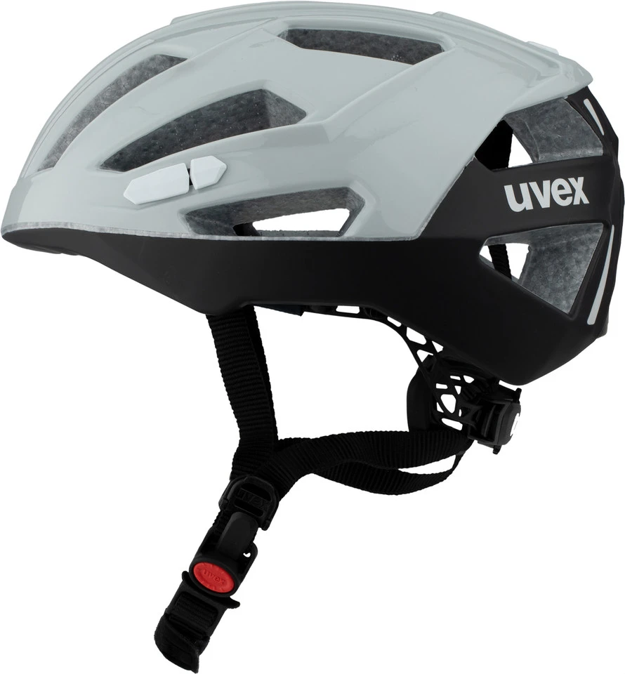 Der Monomatic-Verschluss von uvex ist ein Ratschenverschluss, der sich einhändig mit einem Knopfdruck öffnen und schließen lässt.