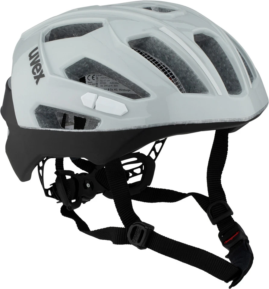 Spezifikationen:Einsatzbereich:Gravel, City, Touring & TrekkingBelüftungsöffnungen:17Konstruktion:Double-In-MoldVerschluss:RatscheFeatures:bequemer Sitz dank Anatomic IAS Größenanpassung und FAS Gurtband-Systemwiderstandsfähige doppelschalige Konstruktionreflektierende Elementeschnelles einhändiges An- und Ausziehen durch Monomatic Verschlussintegriertes Fliegennetz an den vorderen Öffnungenwaschbare Kopfpolsteroptionale rote Plug-in LED kann am Hinterkopf befestigt werdenTechnologien:Anatomic IAS Anpassungssystem: