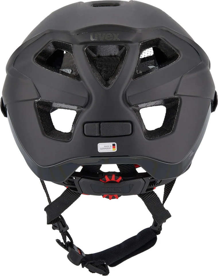 Der Komfortverschluss uvex Monomatic ist mehrstufig und anatomisch geformt, wodurch er sich mit nur einer Hand auf Knopfdruck öffnen und schließen lässt. So sitzt das Kinnband immer perfekt.