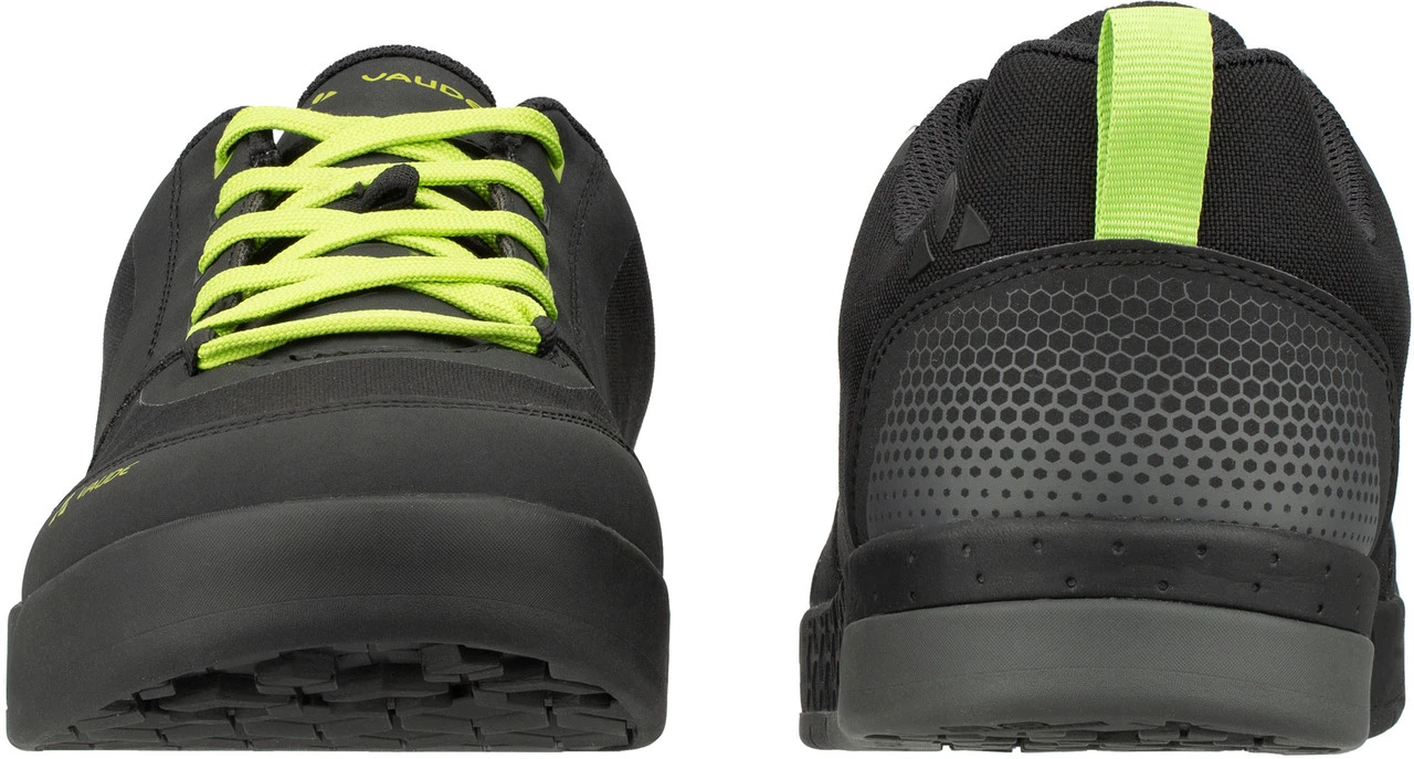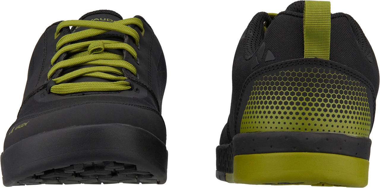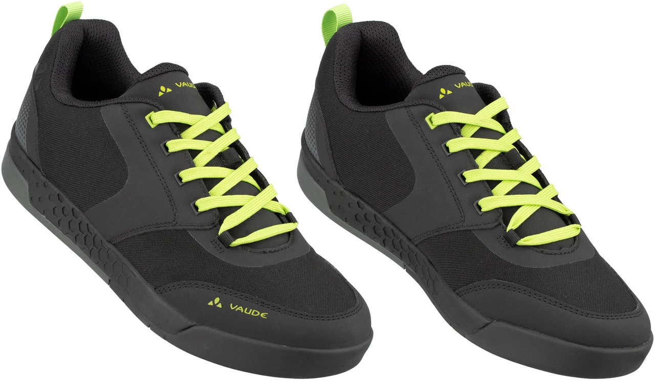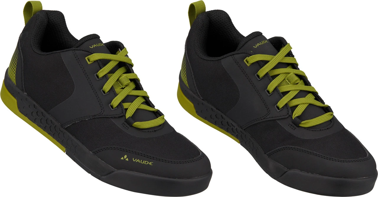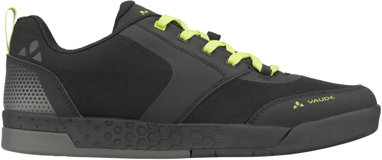 Spezifikationen:Einsatzbereich:All Mountain, Enduro, Cross CountryPedalsystem:PlattformVerschluss:SchnürungSteifigkeitswert der Sohle:V-Flow 3 (= flexibel)Produktlinie:MoabFeatures:SUPtraction Flat Gummimischungleichte und optimal dämpfende EVA-Mittelsohledämpfendes FersenelementProfil speziell für den Flat Pedal Einsatz entwickeltKnöchelschutz durch hochgezogenen KragenAnti-Slip Fersenfutterschützender und stabilisierender Klettverschlussexterne, schützende Zehen- und FersenkappeMaterialzusammensetzung:Obermaterial:Textil (Canvas)Futter und Decksohle:Textil (Polyester)Laufsohle:Sonstiges (VAUDE AM)Technologien:PVC-free: