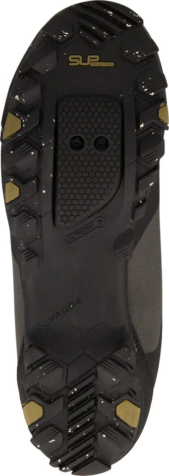 Die SUPTraction-Außensohle ist eine technische Sohle der Schweizer Firma SUPtraction, die spezielle Gummimischungen entwickelt. Die Sohlen werden vom Konzept bis zum finalen Produkt speziell für den Einsatzbereich der VAUDE-Schuhe gefertigt, um das bestmögliche Ergebnis zu erreichen.
